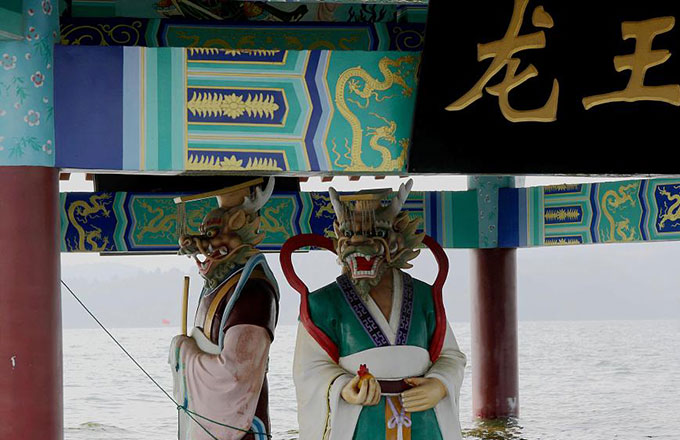 Next to the composition which is entitled "Traveling along the Clear Water" is put on display the Zi Zhong Jiang Pan inside of which there are figures of aquatic birds, frogs, turtles and fish. It dates back to the 7th century BC (Early Spring and Autumn Period), it was made for Princess Zi Zhong Jiang and it is considered one of the most important exhibits of the Shanghai Museum.