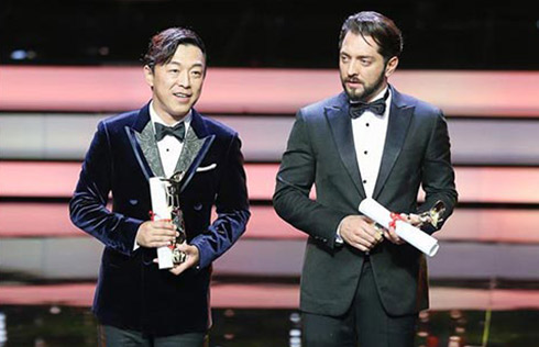Christine Cayol, founder of Yishu 8 (L) and the French ambassador to China Sylvie Bermann.[Photo/Chinadaily.com.cn] |