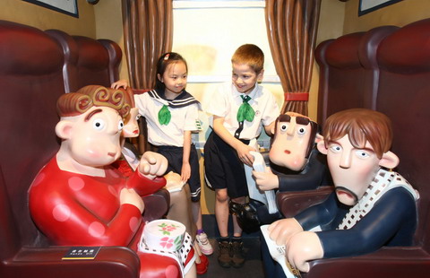 Kids look at cartoon figures in the Animation Museum in Shanghai on June 29 2010. [Photo/IC]