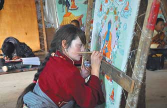 Among the town's 1,200 adults, there are 140 silversmiths, 72 thangka painters, 98 stone carvers and 18 carpenters.