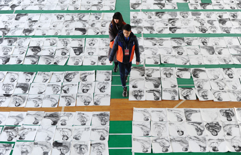A visitor walks past a collection during the exhibition "A Golden Age of China: Qianlong Emperor (1736-1795)", which displays works from China's Palace Museum, at the National Gallery of Victoria in Melbourne, Australia, March 26, 2015. [Photo/Xinhua] |