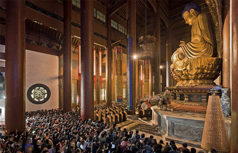 An eaves tile-end of Han Dynasty is on display at Xi'an Beilin Museum in Xi'an, northwest China's Shaanxi province, March 27, 2015. An exhibition of ancient bricks and eaves tiles from China's Qin and Han dynasties (221 BC-220 AD) is held at Xi'an Beilin Museum, which will last until April 15. [Photo/Xinhua]