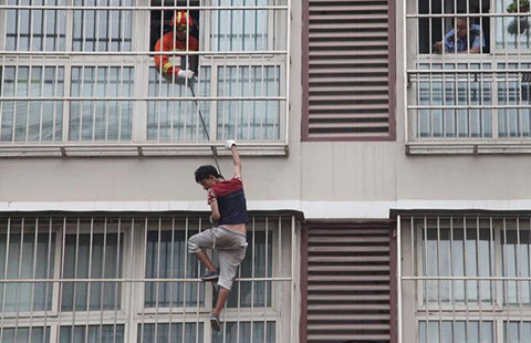 People walk past a wooden fan displayed during a wood art show in Xianyou, Southeast China's Fujian province, June 25, 2015. A wood art show was held in Duwei township of Xianyou in Fujian province on Thursday. Duwei township is home for nearly 1000 wood art enterprises, and the local wood art expertise has almost one thousand years history. [Photo/Xinhua] |