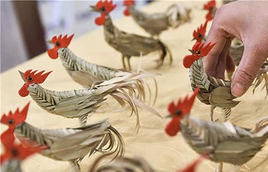 A paper-cut featuring a zodiac rooster is on display at the China Cultural Center in Malta, Jan 12, 2017. [Photo/Chinaculture.org] |