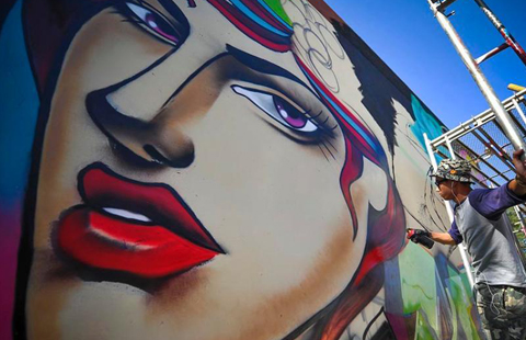 Graffiti artists paint on street walls in Xinjiang