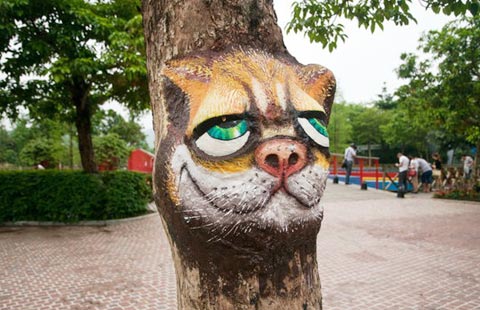 Tree hollow paintings brighten university campus