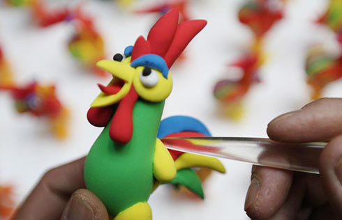 Rooster-shaped dough modellings made to greet Chinese lunar new year