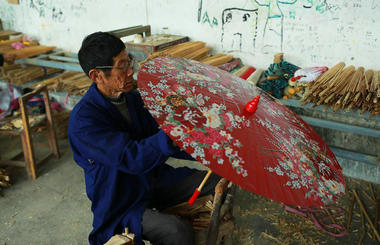 Traditional techniques of making Jialu oilpaper umbrellas in E China
