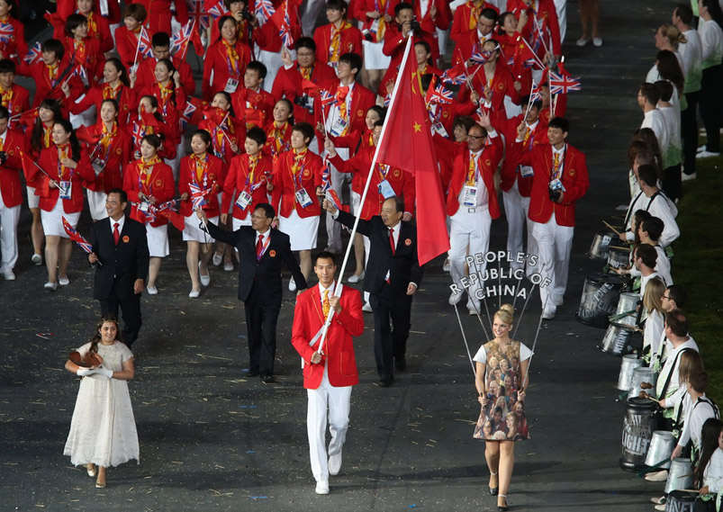 • 在2012年倫敦第30屆夏季奧運會上,中國代表團獲得38枚金牌,27枚銀牌,23枚銅牌共88枚獎牌。圖為2012倫敦奧運會開幕式,中國體育代表團入場。(中國日報記者崔萌 攝)