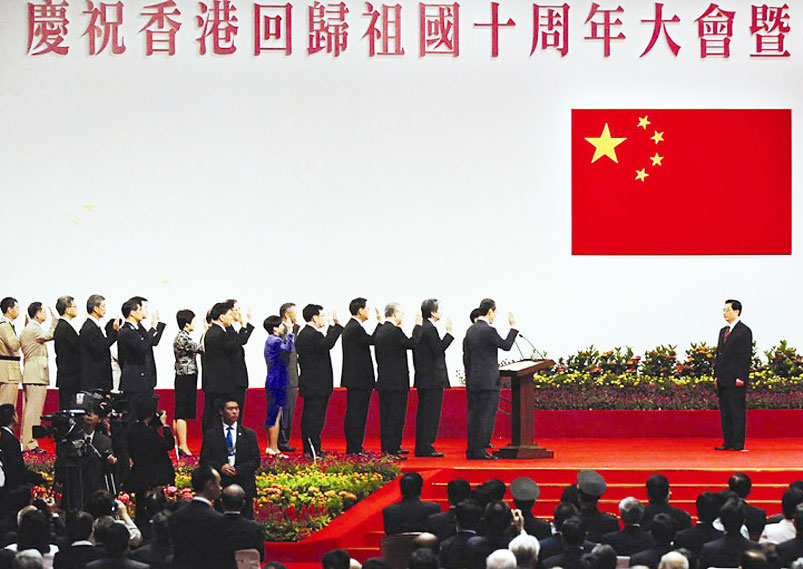 • 2007年7月1日,慶祝香港回歸祖國十周年大會暨香港特別行政區第三屆政府就職典禮在香港會展中心舉行。公磊 攝