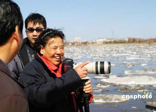資料圖:2006年5月6日,中國攝影家協會主席邵華將軍在黑龍江畔攝影采風。中新社發 邱祥林 攝