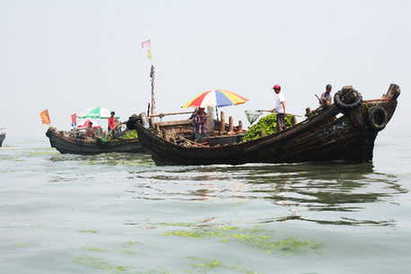 漁民在海上打撈滸苔 據(jù)青島市港航管理局副局長(zhǎng)崔景波介紹,青島市經(jīng)過多次實(shí)驗(yàn)和改裝,目前已成功將一種大型水泵安裝到打撈船舶上,利用過濾法有效提高了滸苔打撈清理速度,目前,共有8艘配備這種水泵的船只參與海上清理滸苔工作。近日還將有艘同樣的40多艘船舶投入使用。大量登陸艦、挖泥船、拖船、漁船、帆纜設(shè)備和大型運(yùn)輸機(jī)械,投入清理好打撈,提高了速度。
