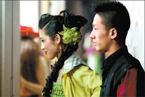 二人轉表演者尤亮(音)和他的妻子 中國日報網環球在線消息:只要能抓住觀眾的注意力,尤亮(音)可以做任何事——裝瘋賣傻,動情歌唱或模仿國內著名的喜劇演員?!坝^眾的掌聲對我來說就是一切。”他說。 二人轉是中國東北常見的民間藝術。它的音樂通常是東北民歌,對第一次聽的人來說也許是痛苦的嚎叫,但對習慣的人來說確是天籟之音。 在半個小時的表演之后,尤的臉上全是汗水。作為開場表演,尤亮和他的妻子要非常賣力的吸引觀眾。 表演場地原是電影院,后因為賣不出票而歇業。但當該劇場開始二人轉表演時,生意開始繁榮起來。 歷史遺產 二人轉有300多年的歷史了。資料顯示,它將東北民歌、秧歌和歌劇融合在一起。表演者在農村巡演,不僅娛樂當地居民,還把外面世界的新鮮事帶給他們。 1995年以前,二人轉還沒有女演員,所以男演員常常反串表演。 約在十年前,在趙本山的努力下,這項獨特的民間藝術開始流行。2001年,這個鐵嶺人發起了遼寧二人轉大賽,來推廣這個民間藝術。 ![]() 目前,很多地方劇在競爭激烈的娛樂市場掙扎著求生存。而二人轉卻俘獲了全國觀眾的心。在東北,二人轉表演甚至出現了一票難求的現象。 “二人轉根植于東北,” 鐵嶺民間藝術團團長趙岫(音)說?!安幌窬﹦。宿D的藝術形式沒有程式化。它沒有固定的劇本和服裝,經常改變主題,這就是人們喜歡它的原因。” 艱巨的表演 對表演者來說,不斷的編俏皮話和跟上最新的流行歌曲是個艱巨的任務。 一場演出大約有5到6個演員。有些非常受歡迎的演員要從一個場地趕到另一個,每晚在幾個場地之間表演數場。另一些,就要一直演到劇場關門。到午夜才吃上晚飯。 “這是個壓力很大的工作。它要求你有很多的才藝,而每一個人要有至少一門獨技?!?span lang="EN-US">28歲的演員趙波說。 很多人因為二人轉的粗俗而不喜歡它,趙波不同意,“只要觀眾喜歡,我認為這就是一種藝術形式?!?/span> (中國日報遼寧記者站編譯) |