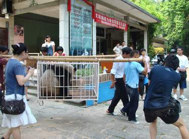 災(zāi)區(qū)病號大熊貓?jiān)诟V葸M(jìn)行全面體檢