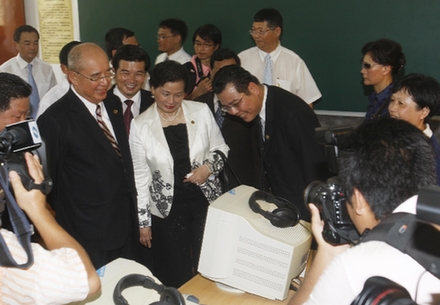 Updated: 2008-08-15 15:13 “吳爺爺歡迎您”。10點50分,吳伯雄主席一行來到了思賢小學。一群兒童的歡迎聲和少先隊的樂隊聲響切了思賢小學。隨后吳伯雄主席一行參觀思賢小學新教學樓,聽取了思賢小學發展情況介紹,并向思賢小學捐贈10萬元禮金,贈一架鋼琴和八把小提琴的硬件設備。 吳伯雄主席說,奧運會開幕式上,孩子的歌聲讓我感受到音樂的力量,希望捐贈的音樂器材,可以讓家鄉孩子們將來有更快樂、更健康的唱歌、學音樂。 11點20分,吳伯雄主席一行乘車前往祖墓山下拜謁先祖。在午宴上,主要是“地道客家菜”為主,“桑梓情懷心連心,兩岸同胞一家親,” 吳伯雄主席感慨到。吳伯雄主席說,“8年前我來到過這里,那時我們國民黨丟失了政權,8年后的今天我又來到這里,感觸頗多。兩岸有了今天雨過天晴的良好局面,來之不易,我們大家都會倍感珍惜,共同為兩岸創造永久的和平。” 下午14點30分,吳伯雄主席及其夫人戴美玉一行前往被列為世界文化遺產的客家土樓并參觀了“承啟樓”,還親手種下象征永久常青的樹。 國民黨主席吳伯雄攜夫人戴美玉為世界遺產永定客家土樓僑福樓植樹 (胡美東 攝) 在“僑福樓”觀看客家民間節目后,吳伯雄主席夫人戴美玉現場即興作詞,“人生在世善為先,大家來學圣賢書,善惡分明終有報,好人一定出頭天。”還用客家話來演唱,引來在場媒體和觀眾一片稱贊。 吳伯雄主席說:“客家土樓的魅力不在于建筑,在于代表客家文化,人與人和諧相處,相互尊重,有禮節有共同理念。永定人勤懇苦讀,不僅讀書好,做人做事更好,今年永定高考還取得很好的成績。” |