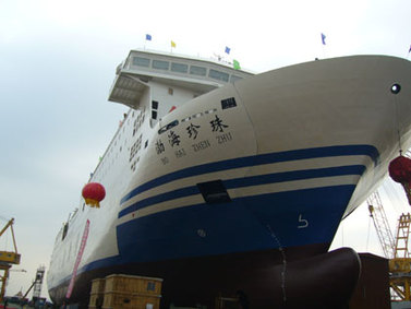 中國日?qǐng)?bào)網(wǎng)環(huán)球在線消息:10月30日上午10時(shí)28分,山東渤海輪渡股份有限公司斥資3.5億元建造的大型豪華客滾船----“渤海珍珠”輪,在位于山東榮成的黃海造船廠順利下水。這是繼“渤海金珠”輪、“渤海銀珠”輪成功投入運(yùn)營后,渤海輪渡公司建造的第三艘大型豪華客滾船。預(yù)計(jì)經(jīng)過半年的內(nèi)裝修,明年上半年交付使用。
