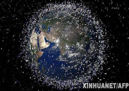 這張歐洲航天局發(fā)布的電腦合成照片顯示的是約有12000塊太空碎片圍繞地球運(yùn)轉(zhuǎn)。