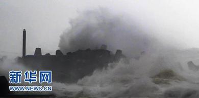 9月19日,臺風“凡亞比”登陸臺灣,宜蘭大溪漁港出現大風大浪。新華社發