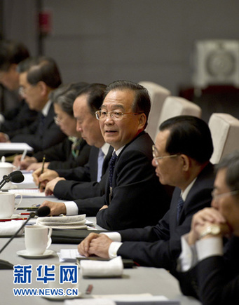 3月7日,中共中央政治局常委、國務(wù)院總理溫家寶參加全國政協(xié)十一屆四次會議經(jīng)濟、農(nóng)業(yè)界政協(xié)委員聯(lián)組討論。新華社記者李學(xué)仁攝