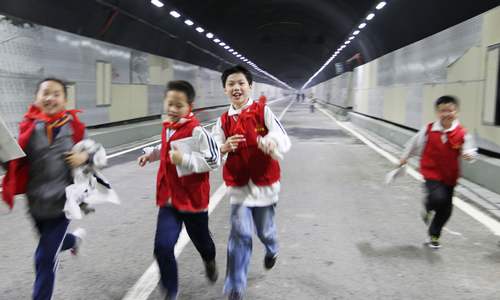 10月26日,幾名小朋友在長沙市湘江營盤路過江隧道內(nèi)奔跑。當(dāng)天,該市千余名市民參加穿越湘江營盤路過江隧道活動,體驗湘江第一隧的宏偉與便利。劉尚文攝