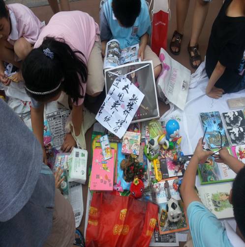 “跳樓價(jià)大甩賣” 同學(xué)們將自己不用的物品便宜出售。