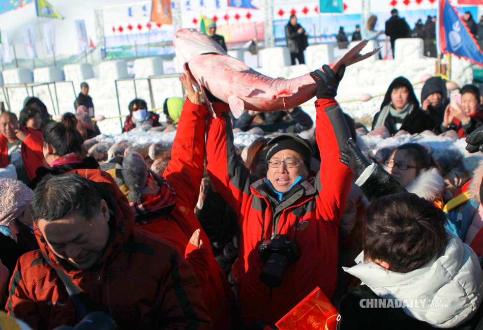 吉林查干湖冬捕“頭魚”拍出78萬元天價