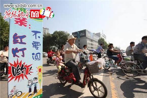 “親:不要闖紅燈喲!”8月22日上午,邢臺市區守敬崗路口多出4塊“淘寶體”交通警示牌,過往市民稱很“萌”很貼心。