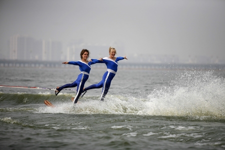 兩位女選手在水面上展現舞姿 李靜 攝