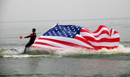 比賽結束后美國選手展示國旗