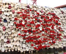 鐘鼓樓是西安的標志性建筑,位于市中心,鐘樓和鼓樓東西對峙。來到西安一定要體驗下“晨鐘暮鼓”,從環狀地下通道上到鐘樓,親手敲敲西北角上的那口明代鐵鐘,在悠揚的鐘聲里放眼四望,正對的西大街古建筑云集,紅瓦飛檐宛若仙界。在鐘樓看看東西南北四條大街,也許你會更懂西安。白天在鐘樓看風景,夜晚就要在黑暗中看鐘樓了。夜間的鐘樓在各色燈光的映照下,莊嚴,華美,神秘。欣賞鐘樓夜景后最適宜到鼓樓后面的回民街逛逛,這里是西安最有名的小吃街,賈三灌湯包,紅紅酸菜炒米,特色小甄糕,平娃烤肉……欲罷不能的小食。