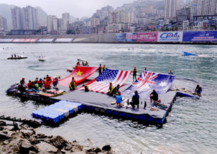 2013年中美澳藝術滑水對抗賽分站賽的首站比賽昨天在重慶彭水開賽,在為期兩天的比賽里中來自中國、美國和澳大利亞三國的近百名藝滑高手將各展絕學,爭奪各個獎項的冠軍。