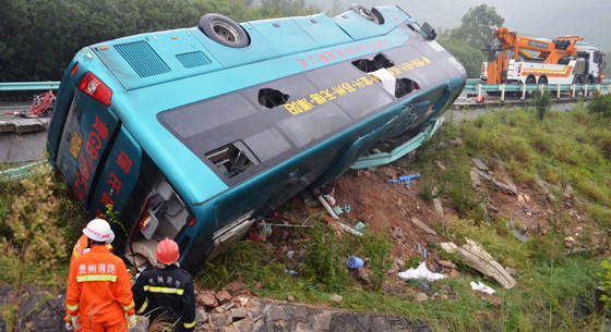 滬昆高速貴州凱里段大客車側(cè)翻致2死43傷