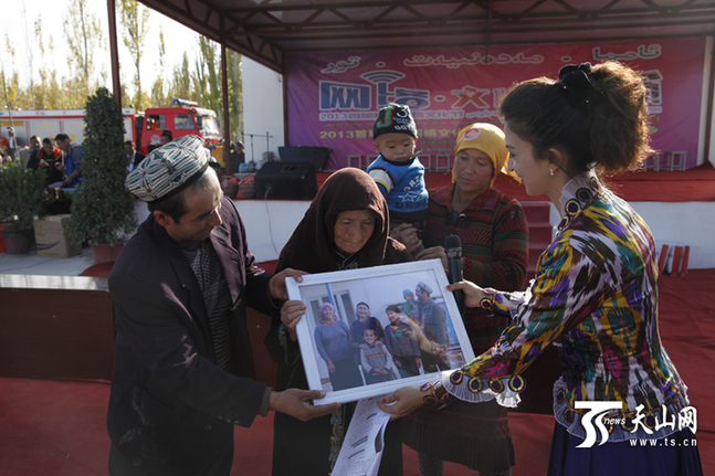“以前從沒機會拍張全家福照片,謝謝你們!今天是個開心的日子!”11月4日,"網(wǎng)絡·文化·群眾"新疆首屆網(wǎng)絡文化節(jié)進鄉(xiāng)村活動在疏附縣薩依巴格鄉(xiāng)肖爾村舉行,現(xiàn)場觀眾不僅享受了歌舞、講笑話等精彩節(jié)目,該村4戶家庭還收到了“神秘禮物”——“全家?!毙δ樥掌?,他們收到禮物的那一刻激動萬分。