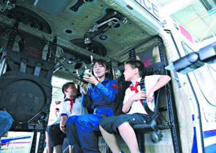 “六一”兒童節即將到來,15名小學生在“平安北京”微博博主的帶領下,一同來到市公安局警務航空總隊,與飛行員們和警用直升機親密接觸。為了便于孩子們理解這份職業,飛行員給自己起了個更易懂的稱呼——空中警察。