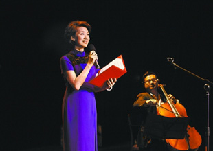 一襲紫色長裙,微紅的卷發,前天晚上,當李修平出現在鼓樓西劇場時,現場觀眾將最熱烈、最持久的掌聲送給了她。” 李修平所說的同伴,是張泉靈、陳偉鴻、季小軍、春妮、歐陽夏丹等二十多位知名主播,他們都參加了這次公益朗誦會。