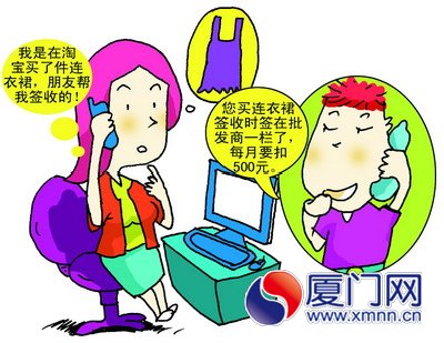 “請問您當時是自己簽收的快遞嗎?”得到記者否定的回答后,對方的語氣嚴肅起來,“我公司在每個包裹上都附帶了一張收貨單,收貨人分為普通客戶和批發商兩欄,當時幫您代簽的人,不小心將您的姓名簽在了‘批發商’一欄。按照公司規定,批發商每月需購買500元貨物,即使您不購買,銀行也會默認您與我公司有批發協議,每月會自動從您的網銀里劃撥500元到我公司賬戶,持續12個月。”