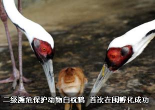 二級瀕危保護動物白枕鶴 首次在閩孵化成功(圖)
