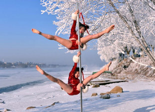 吉林女孩挑戰極限大秀霧凇鋼管舞