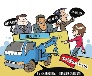 北京某女士自駕游,在高速路上不慎翻車,幸無(wú)大礙,只受了點(diǎn)輕傷。撥打110,交警到現(xiàn)場(chǎng)后又撥了120,120將該女士送醫(yī)院。交警經(jīng)該女士同意(沒(méi)說(shuō)價(jià)格)叫某救援公司將車拖走。該女士第二天去指定地點(diǎn)取車,人家告訴她先去交費(fèi),她拿到收費(fèi)單時(shí)傻眼了:總共41公里,拖車費(fèi)+吊車費(fèi)+停車費(fèi)總共5320元!回程,該女士請(qǐng)保險(xiǎn)公司拖車,結(jié)果80公里,只花了800元拖車費(fèi)。奇怪,同樣是拖車,差別咋這么大呢!保險(xiǎn)公司說(shuō),這個(gè)價(jià)格是參照市場(chǎng)上的其他知名救援公司的價(jià)格定的。她問(wèn)那家高價(jià)救援公司,對(duì)方答曰:公司有權(quán)自己定價(jià)。她又去交管部門討說(shuō)法,被告知他們只管審核公司資質(zhì),價(jià)格不是他們管的。