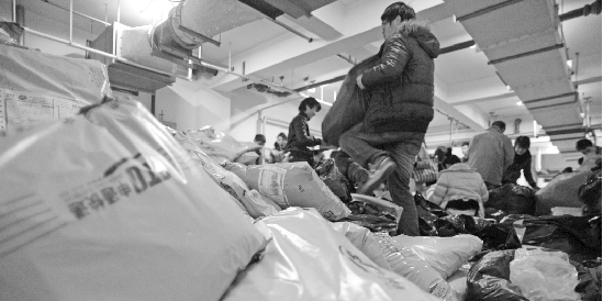 網購火爆,忙熬快遞哥。 記者 董旭明 攝