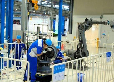 2015年2月25日,遼寧大連,工人們在東北特鋼集團大連基地頂風冒雪保路暢。劉德斌/東方IC