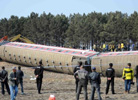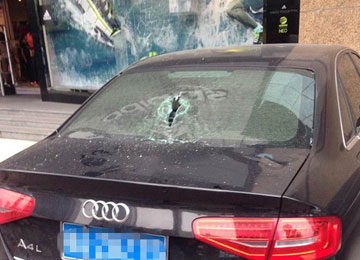 大貨車側(cè)翻將小車壓扁至40厘米(組圖)