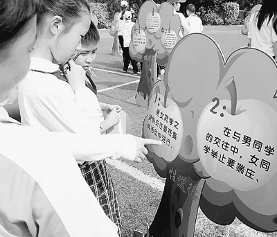 前不久,廣州市黃埔區姬堂小學通過“珍愛生命中的青蘋果”主題游園會,引導學生健康度過青春期。 人民圖片