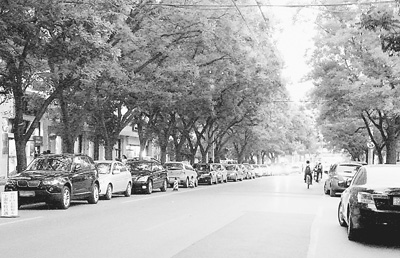 5月11日,在北京朝陽區團結湖路南口向北300米左右的非機動車路段兩旁停滿了機動車,卻沒有一張“貼條”?!”緢笥浾?劉龍攝