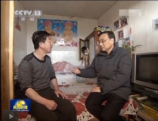 李克強和居民談話時,小朋友從柜子里面溜了出來。