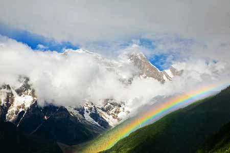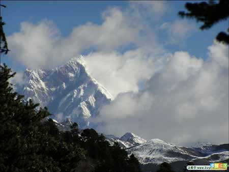 由于大峽谷內水汽豐富,濕度較大,太陽出來的時候,這些水汽就蒸發成云霧,遮住了南迦巴瓦峰;到了晚上太陽落山,溫度降低,這些云霧就會慢慢散去。因此,即使是晴天,中午是很難看到南迦巴瓦峰的。如果住在南迦巴瓦峰下面的村子里,如直白村、格嘎村,天氣好的時候,你可以在夜晚看見沒有一絲云霧的南迦巴瓦峰,靜靜地沐浴著明亮的月光——此情此境,你的心靈會被徹底洗滌,成為你一生最寶貴的記憶。