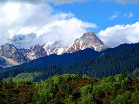 清晨,從直白村南迦巴瓦峰谷底,可看到迎著朝霞、蔚為壯觀的云海,遠山如黛。太陽一升起,地面升溫,云海開始變幻無窮,一股股氣流由下向上擁擠翻騰,一堆堆云團由谷底向上飄逸擴散;有的翻過山口,越過山梁又驟然下落,形成飛流直下的云瀑布;有的則似飄帶,繞山而轉,纏綿徘徊,久久不肯散去。而南迦巴瓦峰之巔白雪皚皚,云霧不時自山下升騰而起,從它錐形的頂峰冒出,猶如火山噴發的煙云一樣;有的高空積云在南迦巴瓦峰頂和其南側的乃彭峰之間搭起美麗的云橋,顯得更為壯觀;而山下云霧不斷穿過林海冉冉升起,這萬千氣象如夢似幻,更襯托出南迦巴瓦峰的神秘莫測。