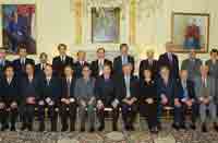 Britain's Prime Minister Tony Blair (6L) is photographed with members of the Anglo-Chinese Forum at Downing Street in central London, October 24, 2001. Pictured from top left standing are: Ding Wei, Lin Jintong, Wang Jiming, Xin Futan, Xie Anshan, Wu Chunhe, Martin Broughton, Sir Leonard Appleyard, Richard Lambert, David Brewer and Katie Lee. Pictured seated from left are: Mei Zhaorong, Quges Ping, Chen Yuan, Xu Guanhua, Song Jian, Tony Blair, Lord Heseltine, Baroness Kennedy, Lord Puttnam, Sir Martin Jacomb and Sir Crispin Tickell. [Reuters]