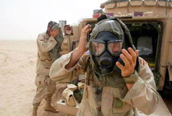 Iraq fired missiles across the Kuwaiti border toward US troops Thursday, prompting soldiers to don gas masks and chemical protective gear. At least one of the rockets was intercepted by a Patriot missile, US officials said. There were no immediate reports of any casualties or damage, and soldiers were given the all-clear. At Camp New Jersey - one of at least two encampments in the Kuwaiti desert where soldiers put on their protective gear because of missile attacks - officers said the missile appeared to be an Al Samoud 2, which is smaller than a Scud. Col. Michael Linnington of the 3rd Brigade of the 101st Airborne Division said the missile did not appear to have a chemical warhead. "Our information was an Al-Samoud missile was launched against US forces assembling in forward attack positions," Linnington said. Earlier, in what appeared to be a separate attack, Kuwaiti Defense Minister Sheik Jaber Mubarak Al Sabah told The Kuwait News Agency two Iraqi missiles fell on the border with Iraq. There were no casualties or damage, another official told KUNA. (AP)