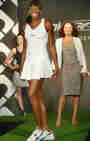 Venus modeled a corset-style white tennis dress Friday that she will wear at